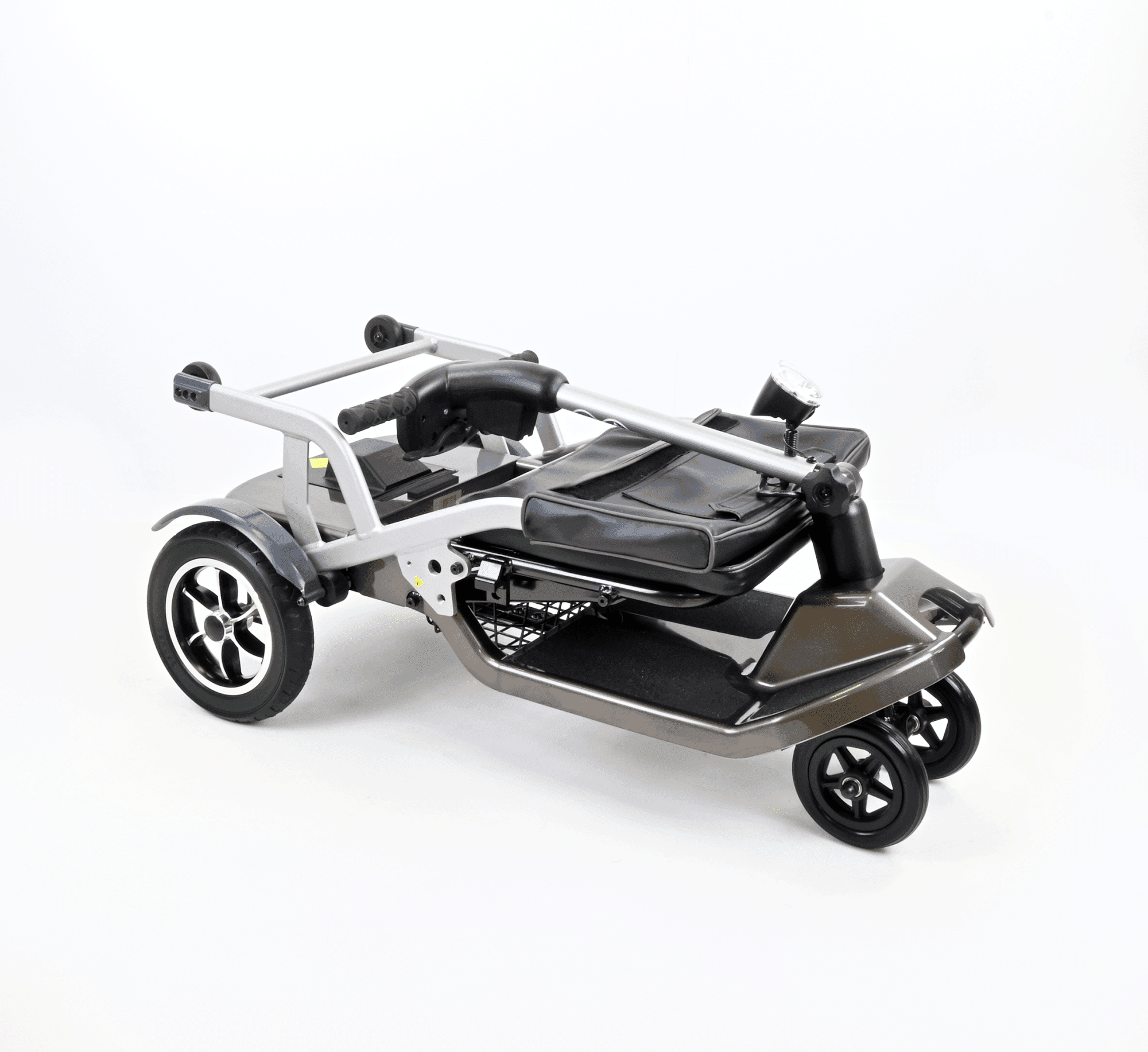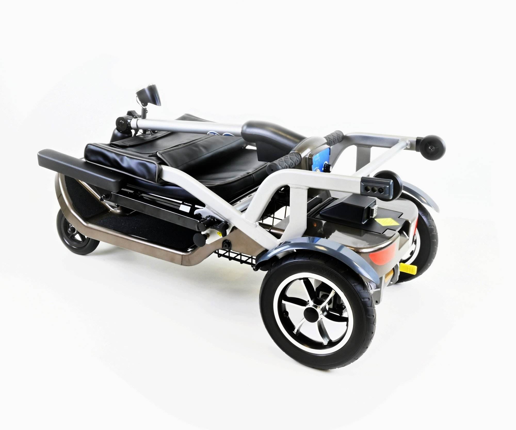 The QFold scooter is a revolutionary lightweight, strong and stable folding scooter that can be folded in seconds for ease of transportation and storage. The chassis is manufactured in ultra-lightweight aircraft-grade aluminium for optimum durability and strength. The QFold also benefits from it’s exceptionally lightweight lithium battery that is both accessible and simple to remove so you can easily move it to a preferred charging location or just charge it through the tiller. The tiller has forward/back adjustment allowing for the perfect user position. The wide and spacious seat with removable arms gives a fantastically enjoyable and comfortable driving experience. Together with the secure-grip handlebar, which gives you full control over manoeuvring the scooter; it is incredibly easy to use and is highly manoeuvrable with great turning abilityhttps://www.youtube.com/watch?v=n8RsITjCtlE