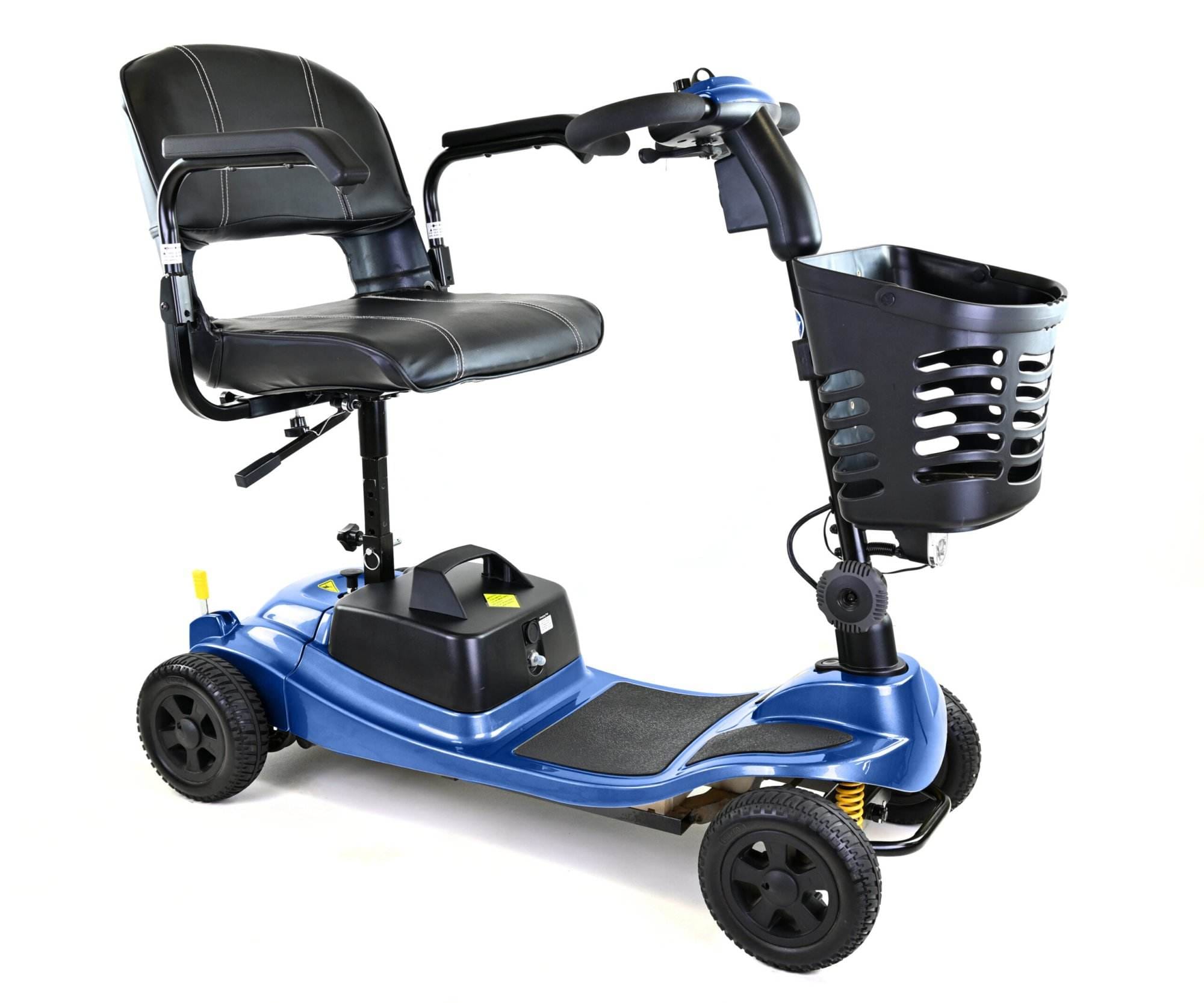 The Vogue is a wonderfully comfortable and fashionable scooter in our range with full adjustable suspension on the front and the back which provides a smoother, and more comfortable ride. The Vogue can be disassembled into five parts in just 30 seconds which aids with lifting and ensures a quick and safe lift into and out of your car. It also has great legroom for taller users giving a comfortable ride for all. Another detail is the secure-grip delta handlebar, which gives you full control over manoeuvring the scooter. The Vogue features an accessible battery pack which is simple to remove so you can move it to different charging locations. Also a second charging port is located in the tiller which allows for easy access when disassembling is not needed. The Vogue has an interchangeable battery pack which allows for a quick and cost-effective upgrade from 12Ah to 20Ah sized batteries, this ensures longer travel time and additional freedom. The scooter also has a powerful LED light, ideal for low light driving conditions.